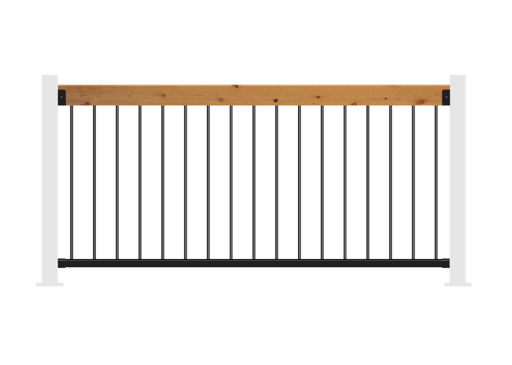 Rampes/clôtures en aluminium à barreaux, à câbles en acier inoxydable ou à main courante en cèdre blanc du Canada.